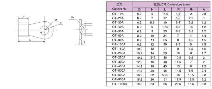 OT copper opening terminals